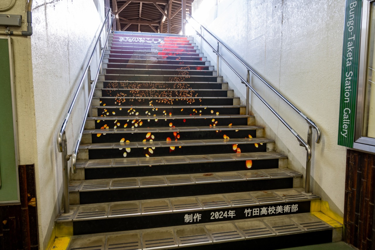 豊後竹田駅に列車が到着するとホームに、瀧廉太郎作曲の「荒城の月」、出発の際には「花」が流れます。
