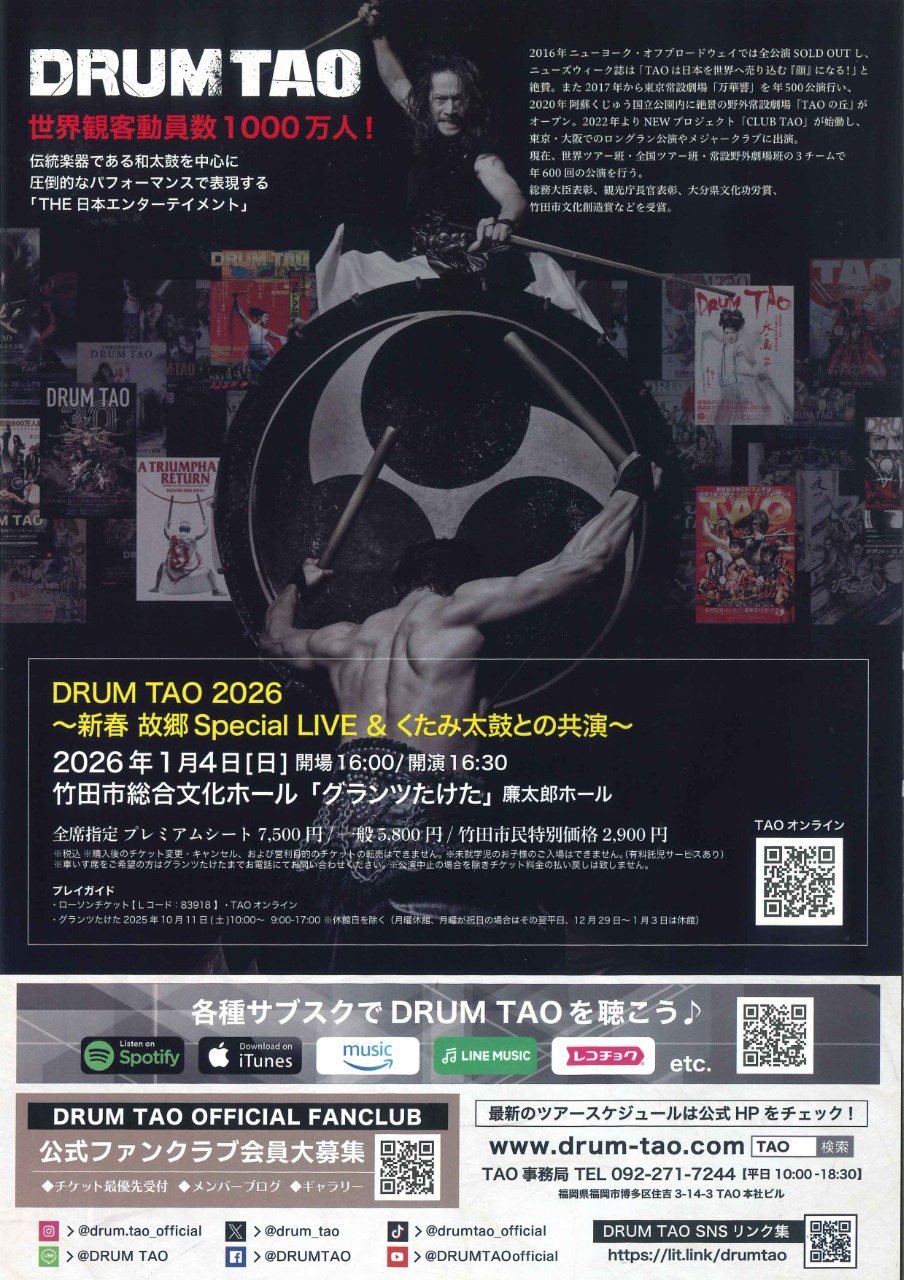 1/4 DRUM TAO 新春特別公演:新春 故郷 Special Live&くたみ太鼓との共演
