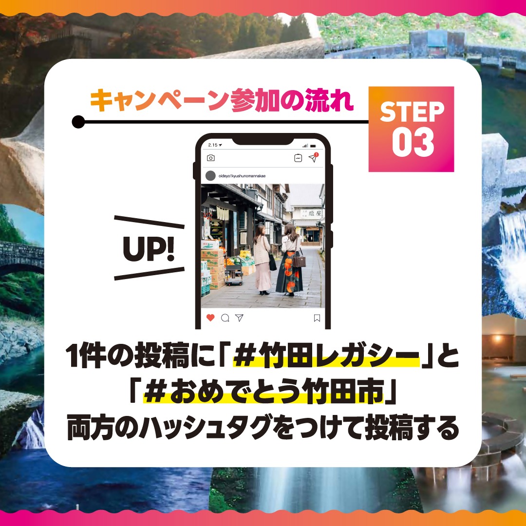 2つのハッシュタグ「#竹田レガシー」と「#おめでとう竹田市」の両方をつけて投稿する - STEP4