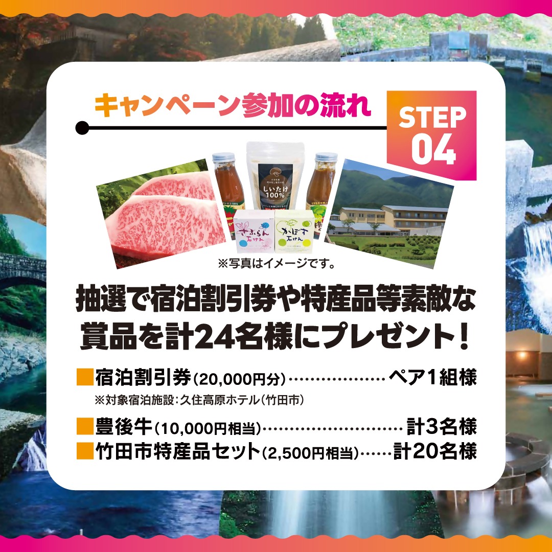 ▪宿泊割引券(20,000円分)…ペア1組様※対象施設:久住高原ホテル(竹田市)