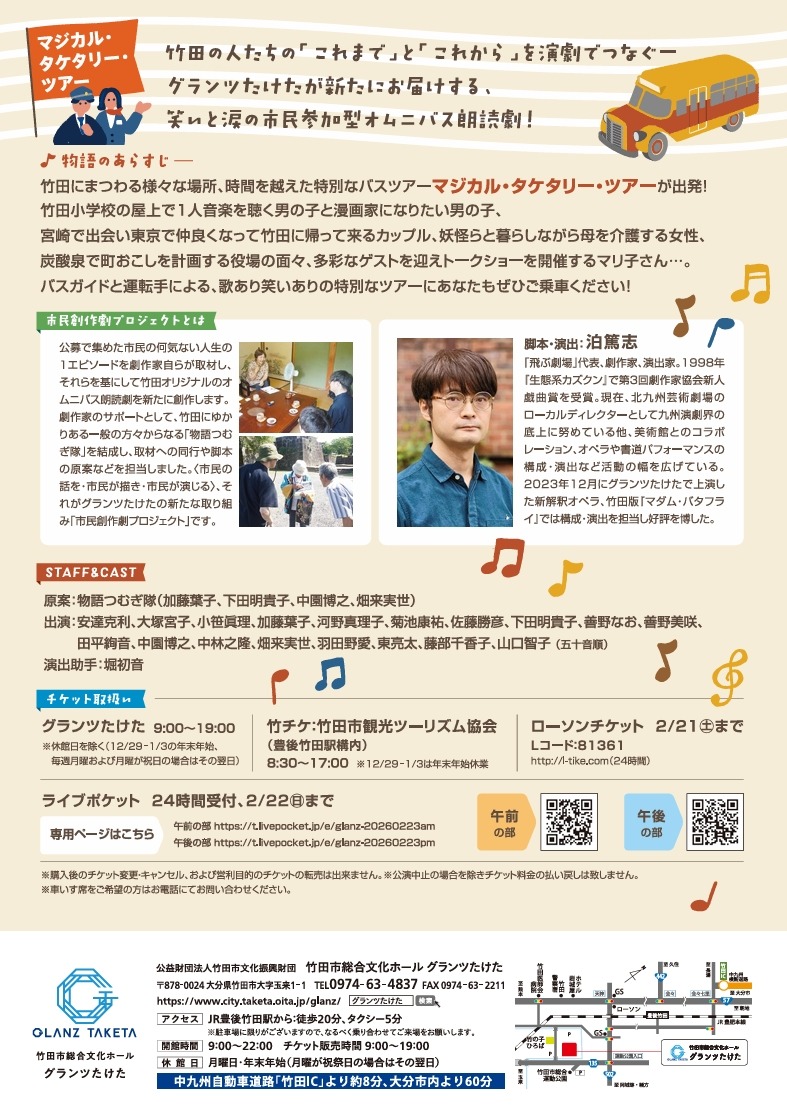 グランツたけたが新たにお届けする、笑いと涙の市民参加型オムニバス朗読劇。
