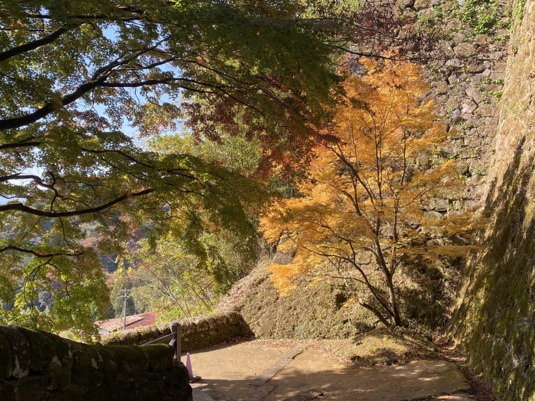 国指定史跡 岡城跡 紅葉情報2025(11/14現在) 城下町・竹田エリア 2025年11月14日 シェア ポスト LINEで送る 岡城跡の紅葉は全体的には3分~5分程度です。 木によって違います。 赤く色づいている木もあります。 (撮影:2025年11月14日11時頃)